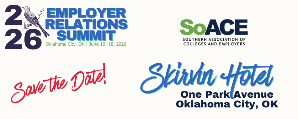 The 2026 12th annual SoACE Employer Relations Summit will be held in Oklahoma City June 16-18 at the Skirvin Hotel. Registration and hotel reservation links will be available soon!